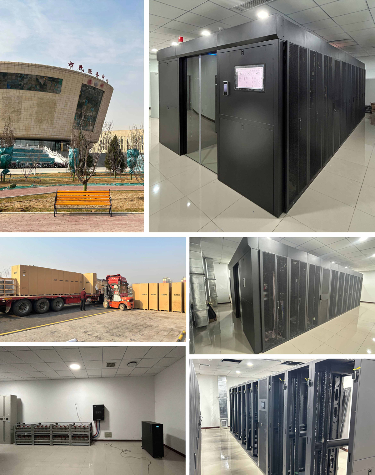 某市市民服務(wù)中心 機房雙排模塊冷通道微模塊中心設(shè)計、施工,內(nèi)搭載1臺列頭柜,2臺25kW列間空調(diào),19個服務(wù)器機柜,外設(shè)1臺60kW UPS電源+電池組組合,擁有快速部署、高效節(jié)能、遠程管理等特點,滿足客戶在云時代對數(shù)據(jù)中心管理的需求。