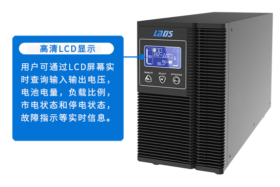 用戶可通過LCD屏幕實時查詢輸入輸出電壓,電池電量,負載比例,市電狀態(tài)和停電狀態(tài),故障指示等實時信息。